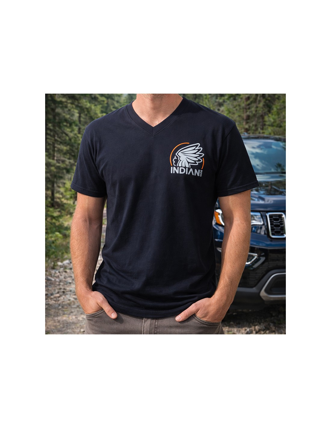 T-shirt INDIANCARS col "V" noir